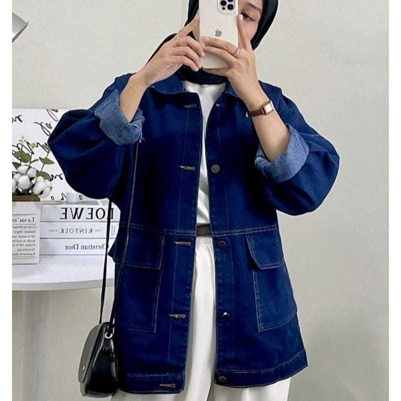 Hitam, Biru, Jaket crop rawis, Navy Blue