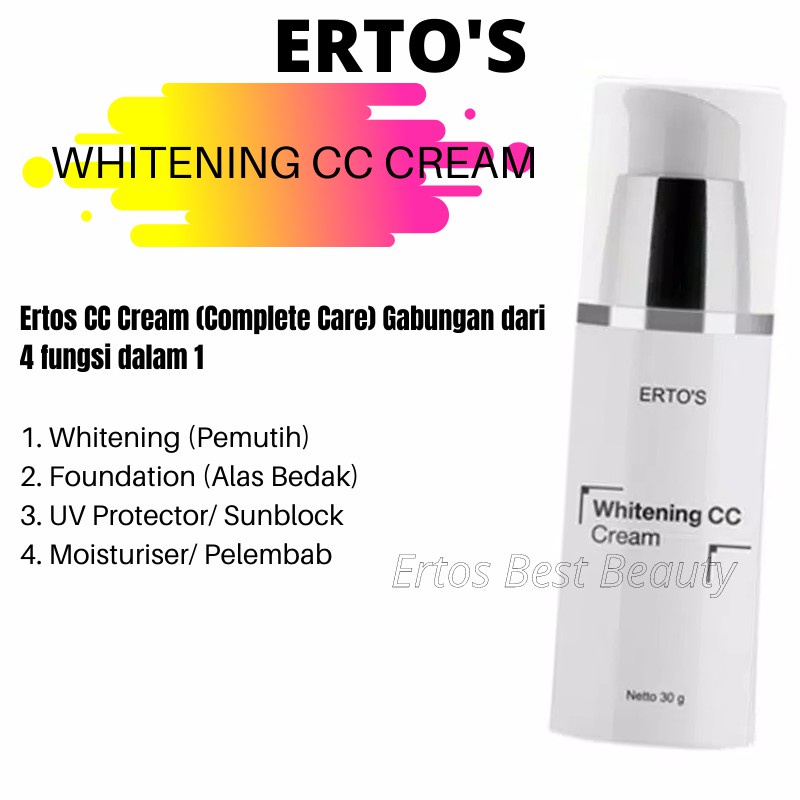 Ertos Paket Whitening Anti Flek Hitam, Penuaan dini dan Pemutih di Wajah 3in1 Serum Kinclong , CC Cream , Dermo Night C