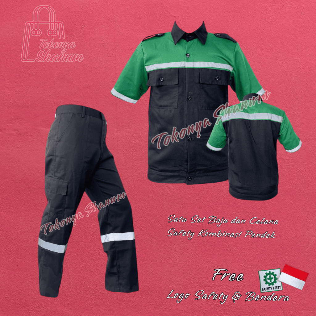 Baju Safety Pendek Kombinasi / Seragam Kerja / Kemeja Proyek Atasan Lengan Pendek / Atasan Kerja Pendek Wearpack Logo