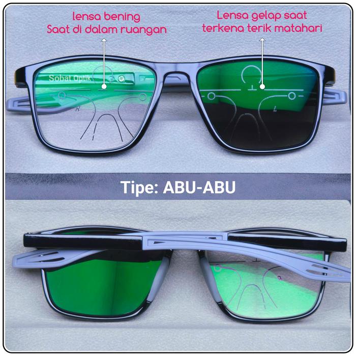Kacamata Progresif Photocromic Baca Dan Jalan Pria Dan Wanita Abu Hitam Lensa Frame - Profresif Abu-Abu, Jauh Normal Bac