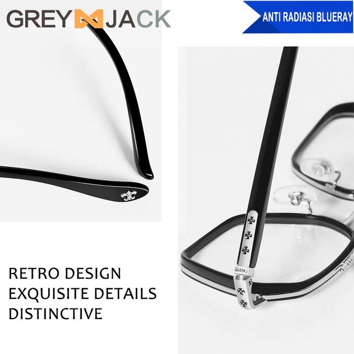 Grey Jack Kacamata Anti Radiasi Blueray Tr90 Metal Retro Design Pria Dan Wanita Dewasa Bisa Minus 0039 - Grey, Blueray N
