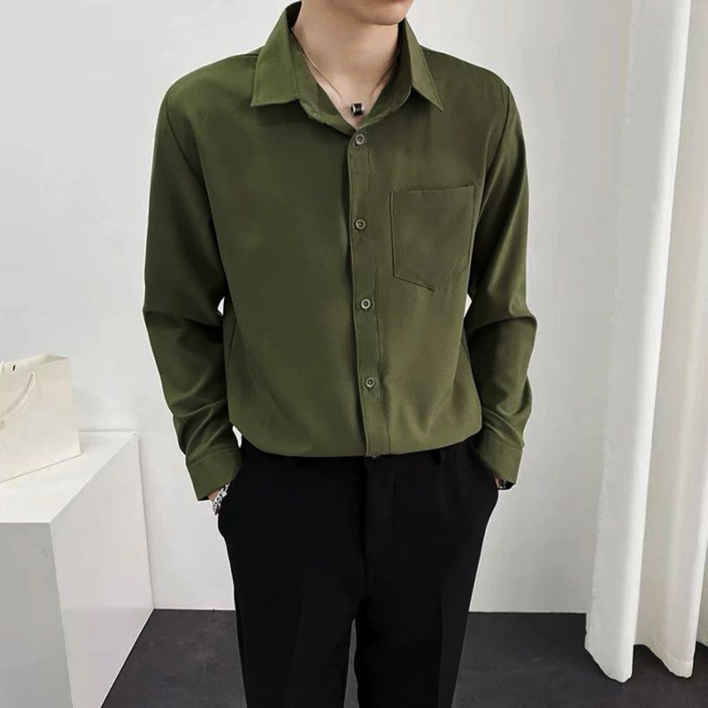 Smilesky Kemeja Polos Pria Lengan Panjang Premium Toyobo - Kemeja Lengan Panjang Hitam Biru Dongker Hijau Army - M L XL