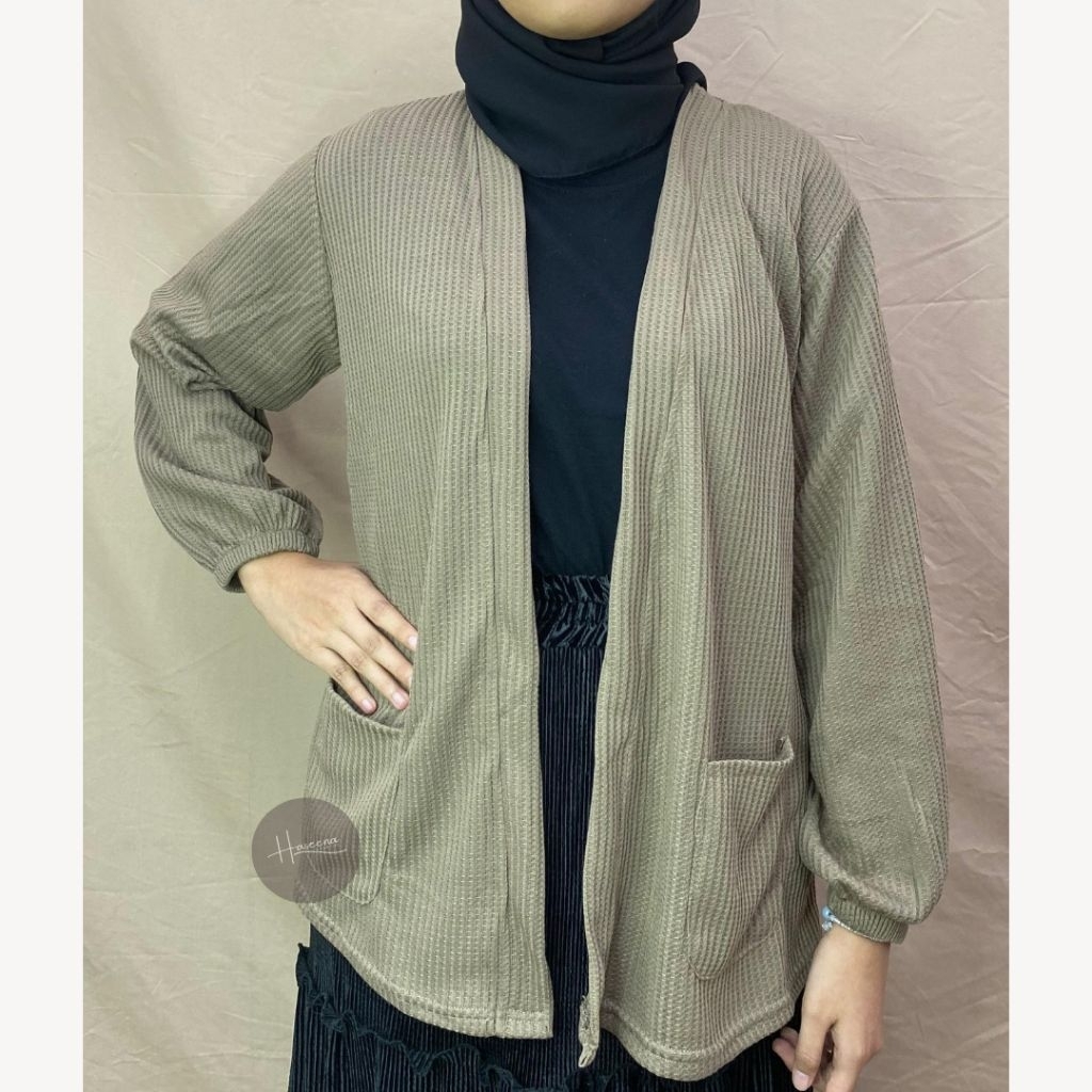 Haseena Cardigan Polos Ayra Outer Wafle Saku Lengan Balon Oversize Jumbo
