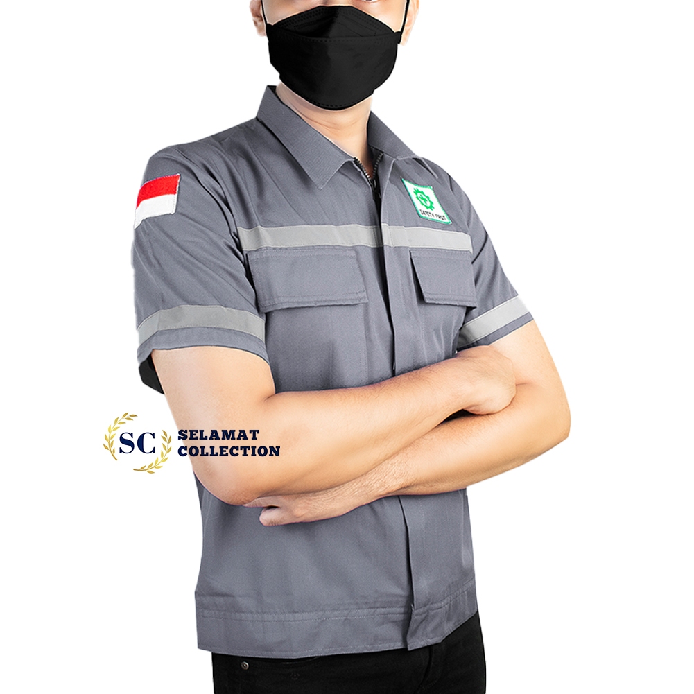 Kemeja Safety K3 by Selamat collection - Baju Seragam Kerja Atasan Wearpack Lengan Pendek Pria Wanita