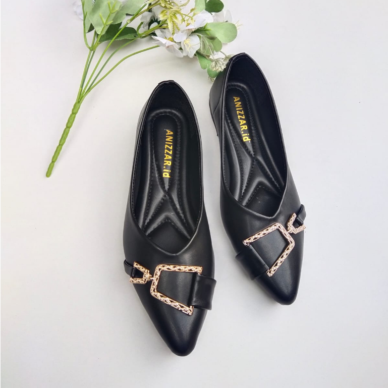 ANNIZAR.ID sepatu flatshoes balet amira hitam bahan sintetis anti slip cocok semua acara