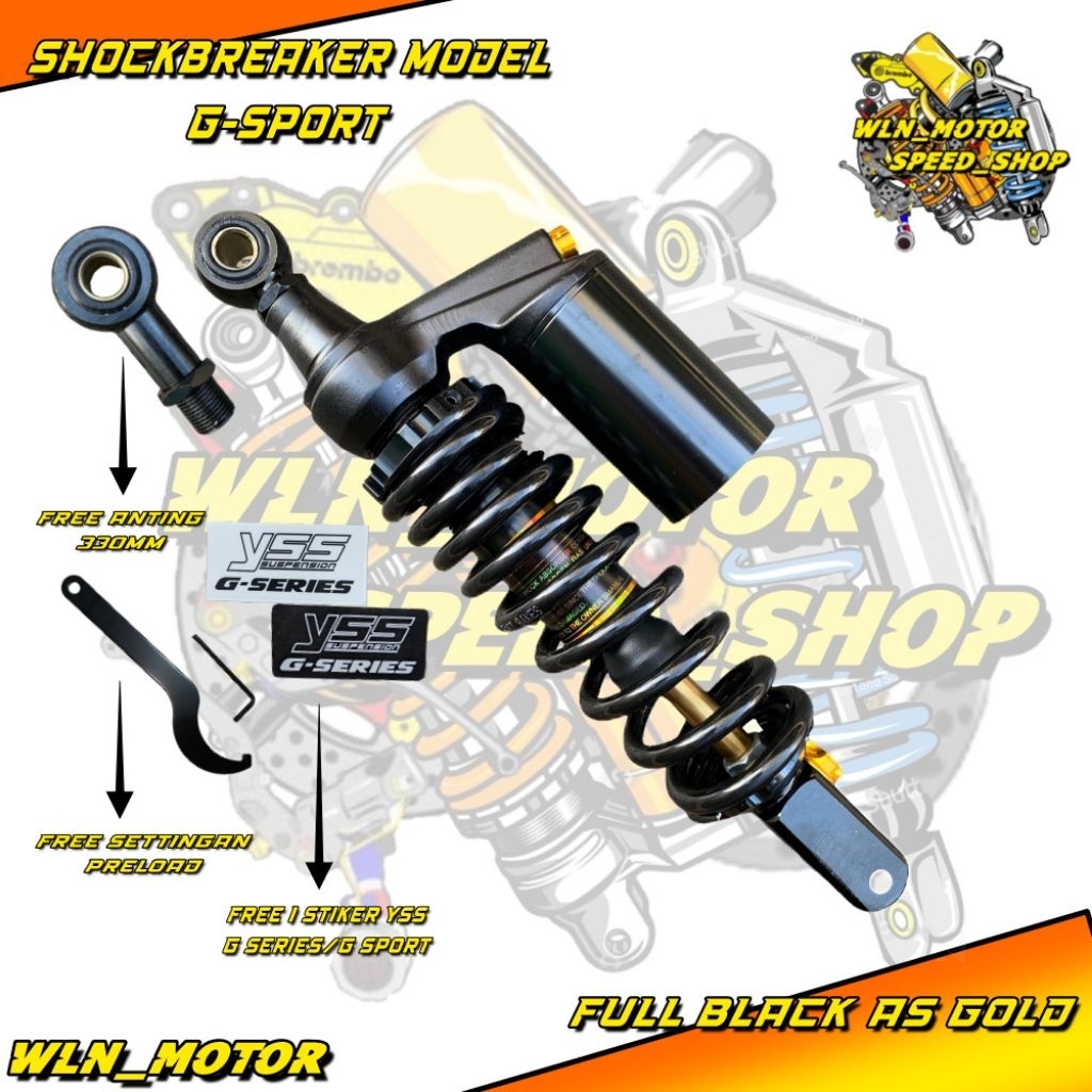 Shock Shockbreaker belakang matic single by race it/fastbiker UK 310/free anting atas 330 replika ys G series hitam leng