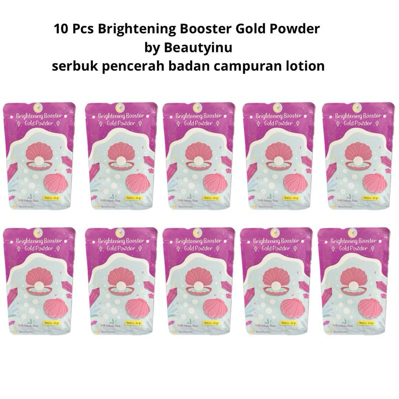 Paket isi 5 dan 10 Pcs Kemasan Baru Brightening Booster Gold Powder Serbuk Pemutih Badan Bisa dicampur Dengan Lotion 25