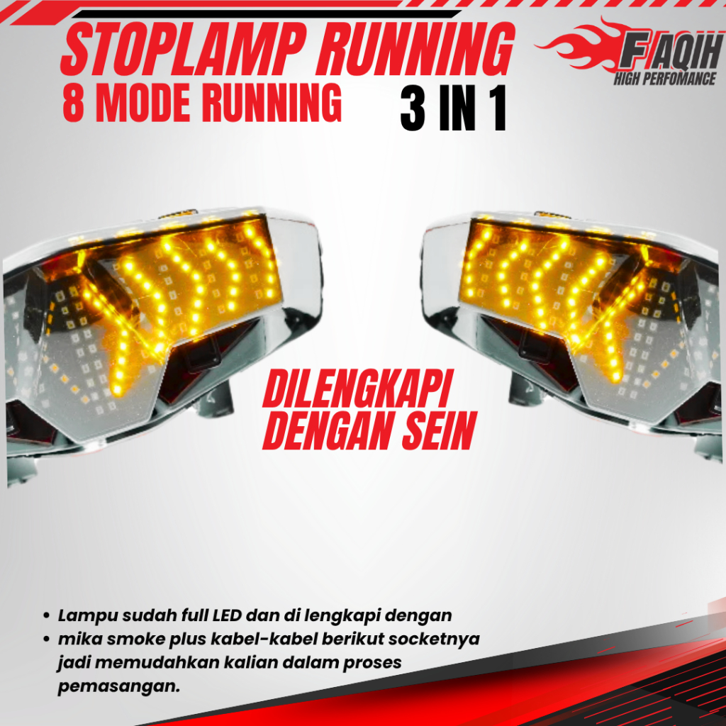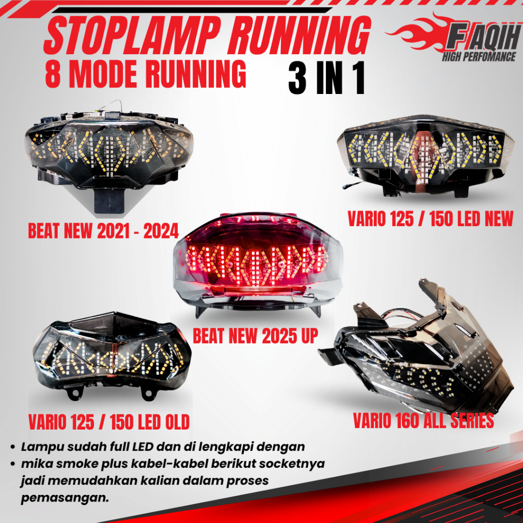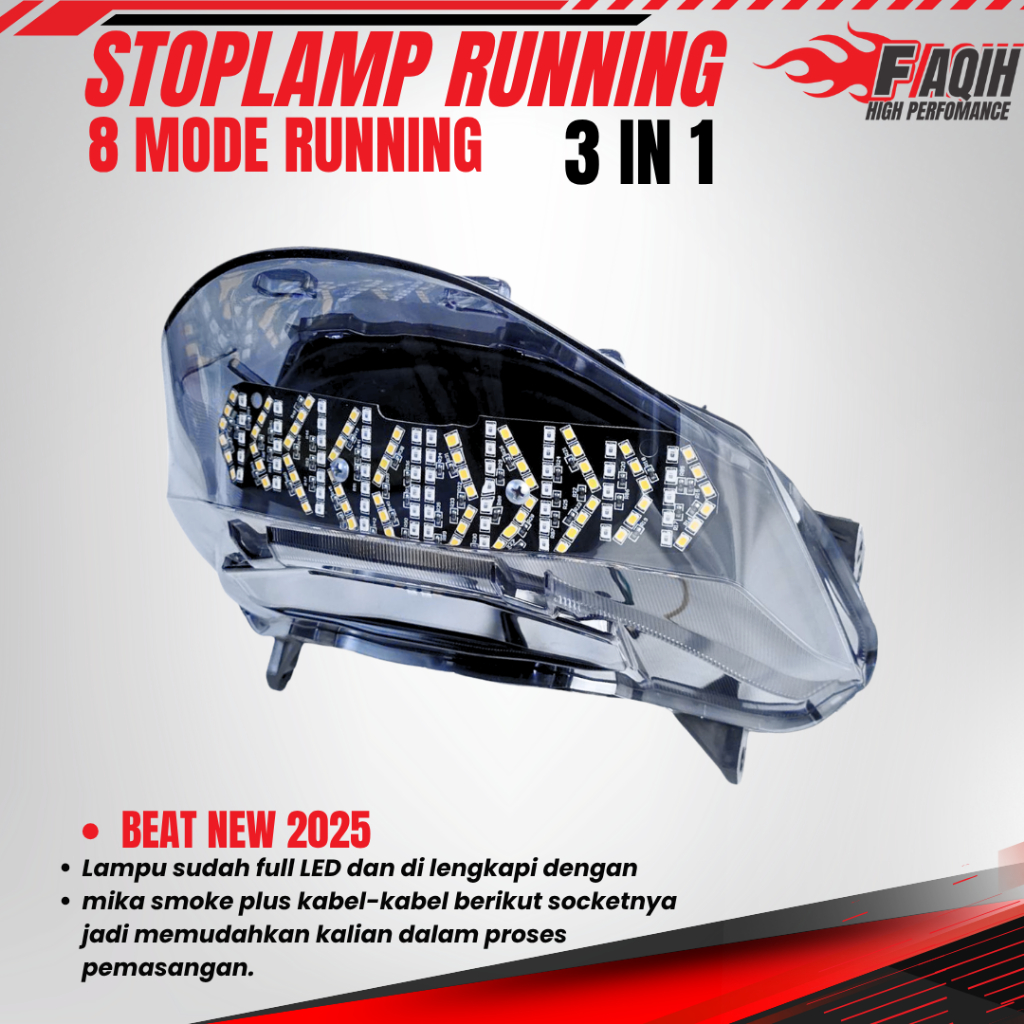 LAMPU BELAKANG BEAT DELUXE RUNING 2020-2024 STOPLAMP BEAT RACE PRO 3 IN 1 8 MODE RUNING MERAH LAMPU STOP BEAT LAMPU REM
