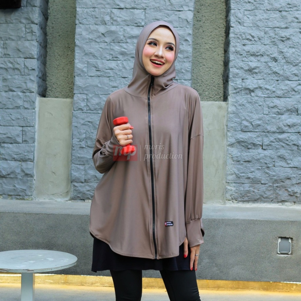 Moris Production : Hijab Jaket XL Jumbo Outer Olahraga Oversize Lengan Panjang Nonpad Resleting
