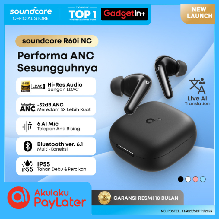 Soundcore R60i NC by Anker, Real-Time Adaptive Noise Cancellation, Hi-Res Sound, AI Translation Earbuds, 50H Playtime