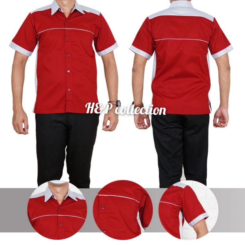 DVR Baju Seragam Kerja Maron Abu Tangan Pendek
