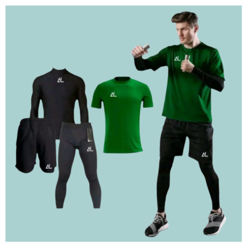 4 IN 1 - Stelan Olahraga Pria Kaos Jersey Kolor Pendek Legging Dan Baju Manset Baselayer Panjang Sport Futsal Lari Baske