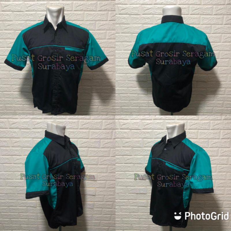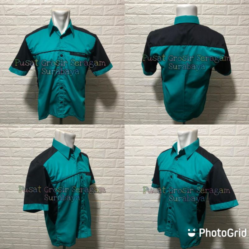Grosir Baju Kerja pria seragam kerja pria kemeja kerja pria hijau tosca hitam baju kerja kantor hijau toska baju bengkel baju cleaning service seragam ob baju lapangan dril bisa bordir harga termurah