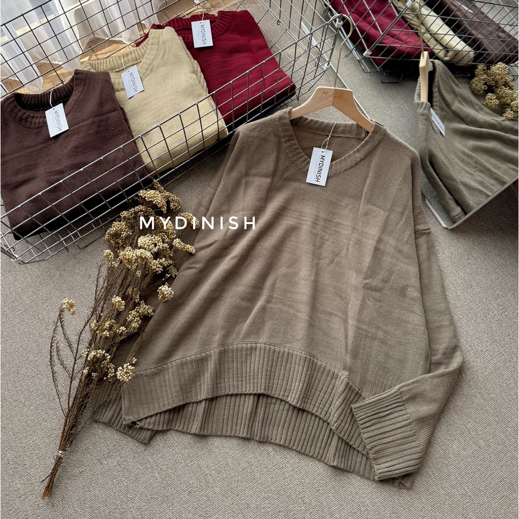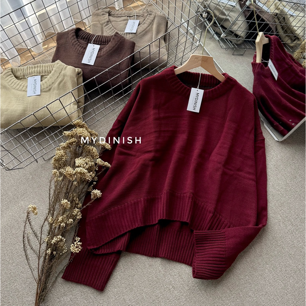 Vora Crop Oversize Sweater- Atasan Rajut Wanita Lucu Korean Style