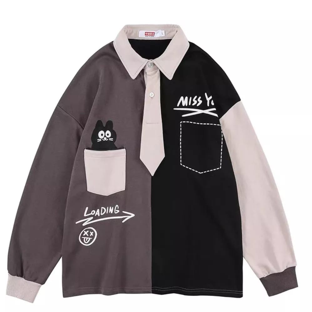Miss You Loading Collar Oversized Sweater Outerwear Remaja Wanita Korean Style Premium