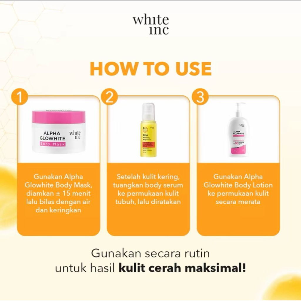 WHITE INC 3IN1 BRIGHTENING CARE ALPA GLOWHITE BODY LOTION + AHA BODY SERUM + ALPA GLOWHITE BODY MASK