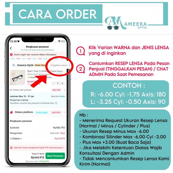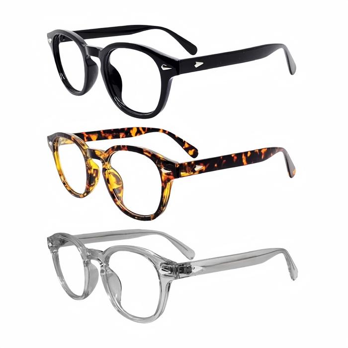 (Beli 1 Free 1) Amlemtosh - Frame Kacamata Kotak Semi Bulat Plastik Tebal Wanita Pria Eyewear Glasses Mata Normal Minus