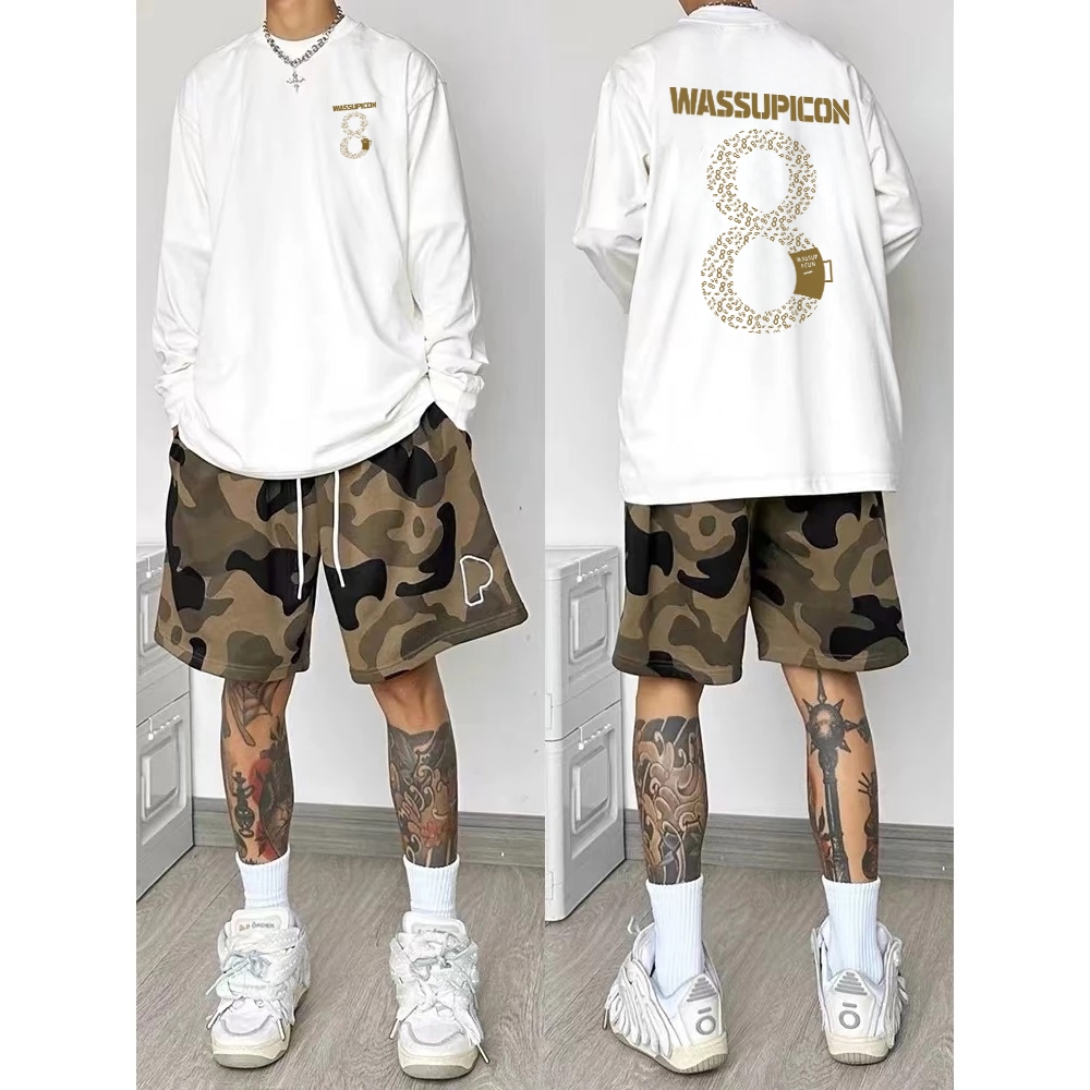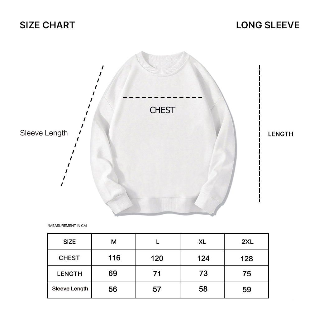 RENELLE Sweater T Shirt Pria Wasupicon No. 8 Oversize Casual Baju Cowok Keren Lengan Panjang Crewneck Pria