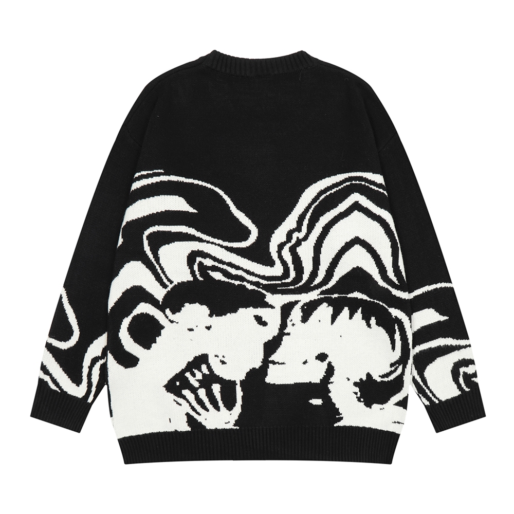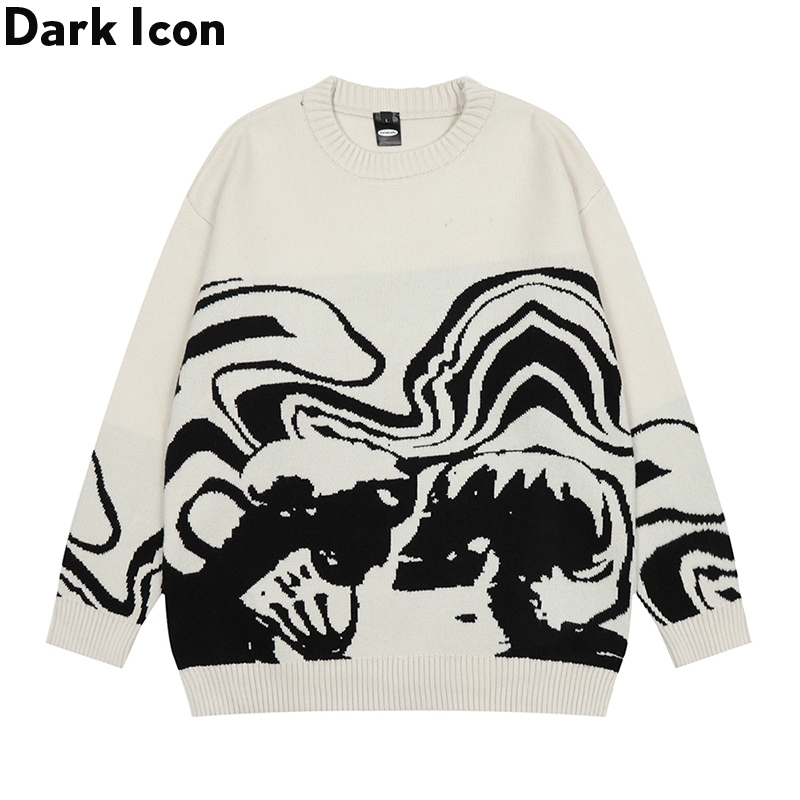 Dark Icon Pullover Men's Sweater Round Neck Loose Sweaters for Men Women Knitwear Black Beige