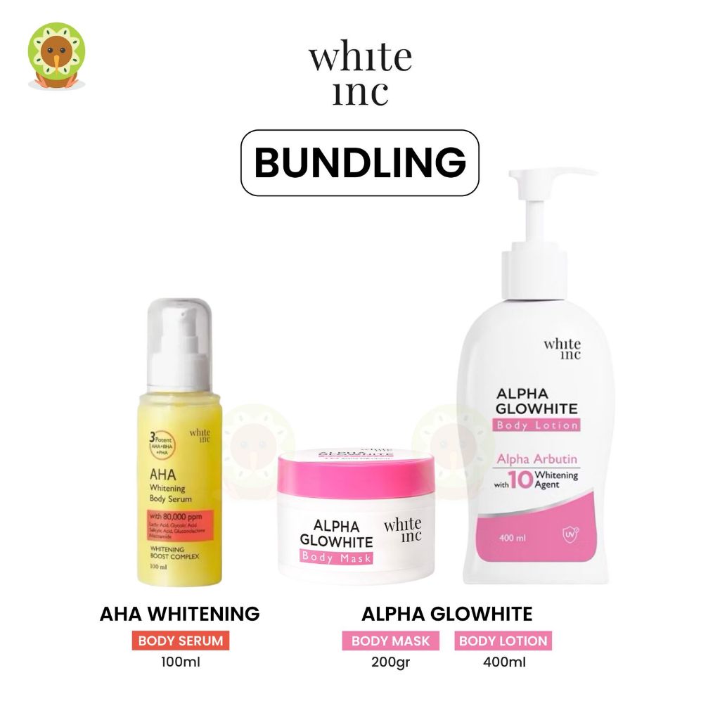 WHITE INC BUNDLING ALPHA GLOWHITE BODY MASK & BODY LOTION - AHA WHITENING BODY SERUM - LOTION BADAN