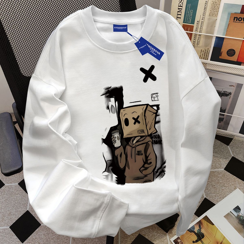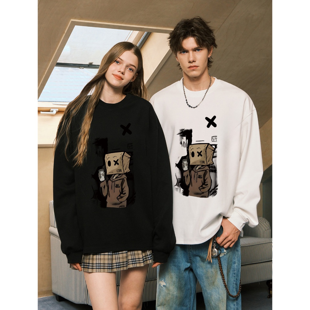 Excetra.id sweater cowok baju lengan panjang pria oversize sweater pria( kardus gaya jalanan kartun ) | crewneck pria pr
