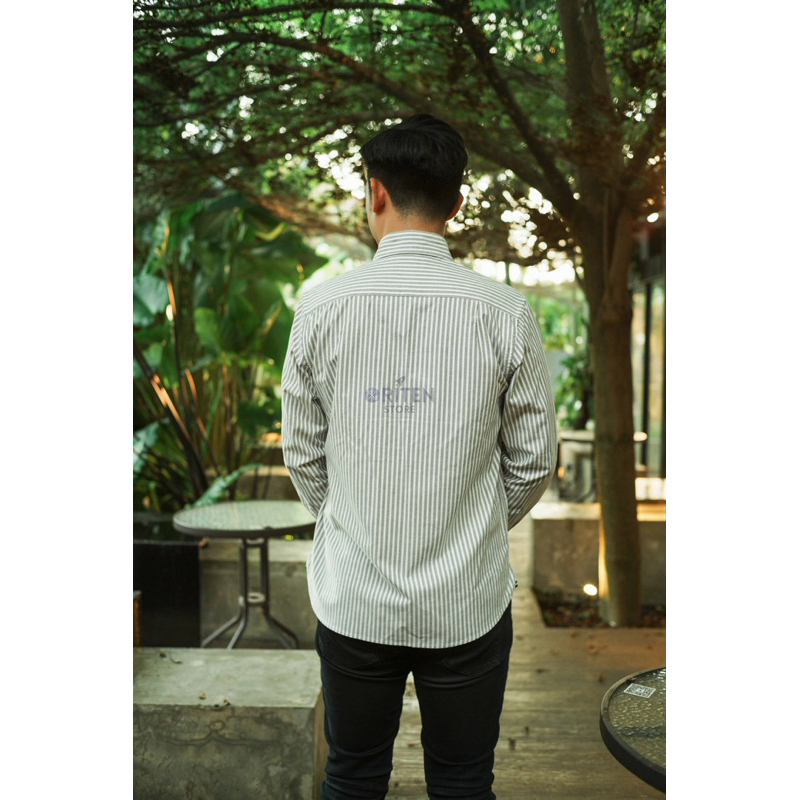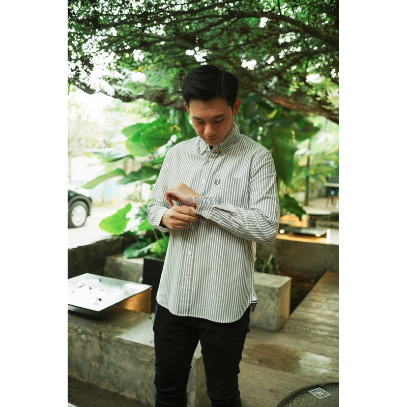 Fred Perry Stripe Long Sleeve Shirt Tennis Blue Original / Kemeja FP Authentic