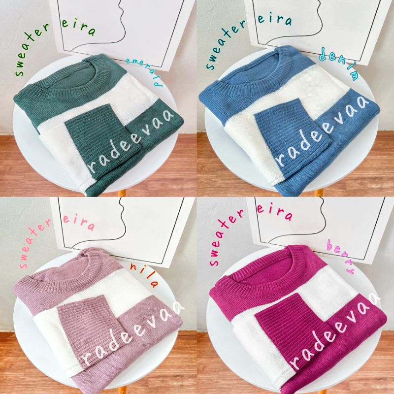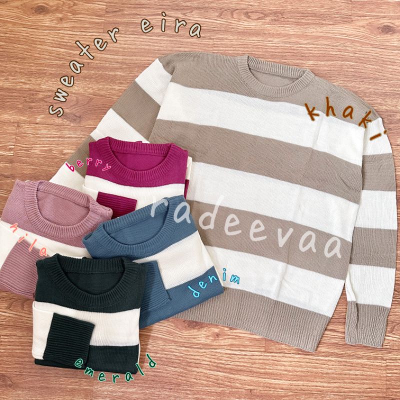 EIRA SWEATER STRIPE Knit Oversize Atasan Rajut Motif Garis Bahan Tebal Premium