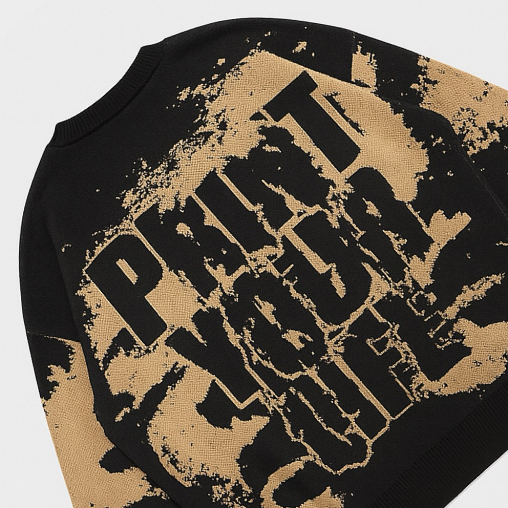 Produsen Rajut Bandung- Sweater Rajut Pria Wanita Motif Wajah & Tulisan “Print Your Life” – Oversize & Nyaman