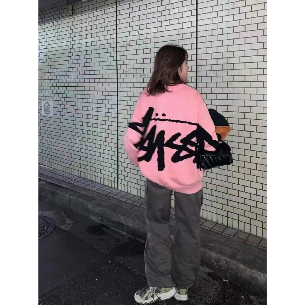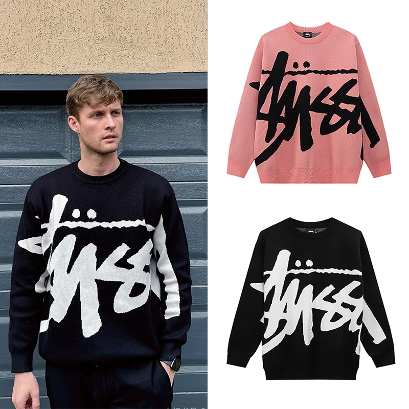 Dark Icon Surat Besar Jacquard Sweater Oversized Pria Wanita Pullover Pakaian Rajut Pakaian Unisex Hitam Merah Muda