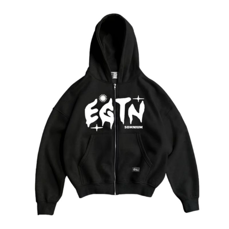 TANS - Hoodie Boxy Zipper Oversize Star Hitam Fit Distro Pria Wanita Elegance Premium