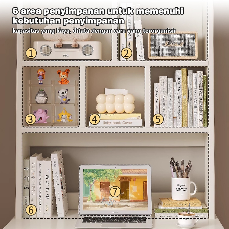 Meja Kantor Serbaguna Meja Belaja dengan Rak Buku Meja Komputer Meja Kerja Multifungsi