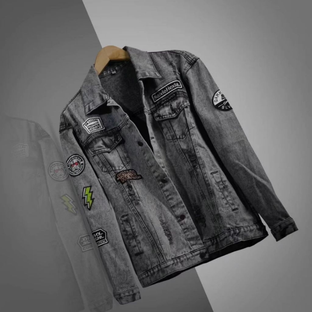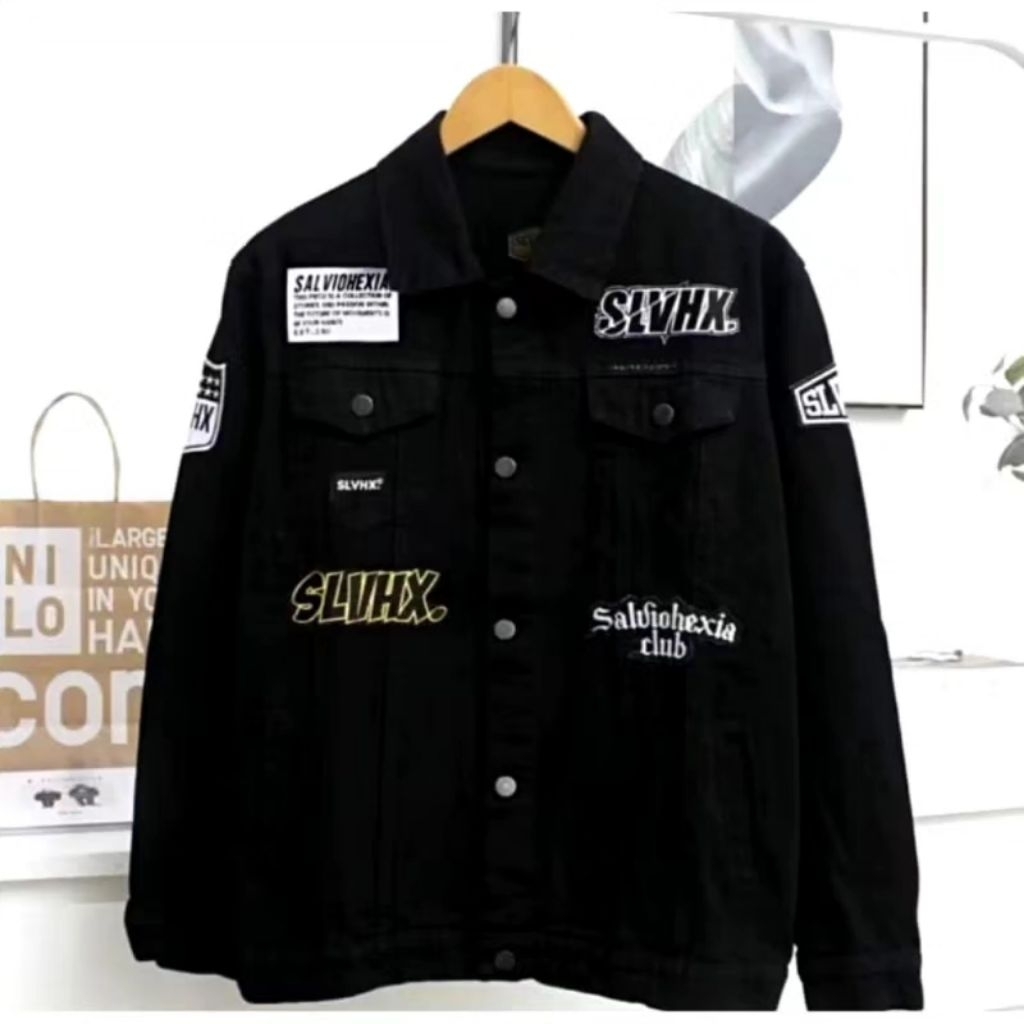 Jaket Jeans Pria Bordir Salviohexia Jaket Denim Cowok Emblem M-XXXL Oversize Terbaru