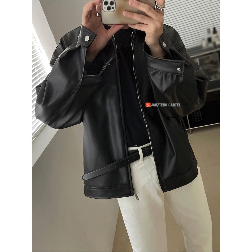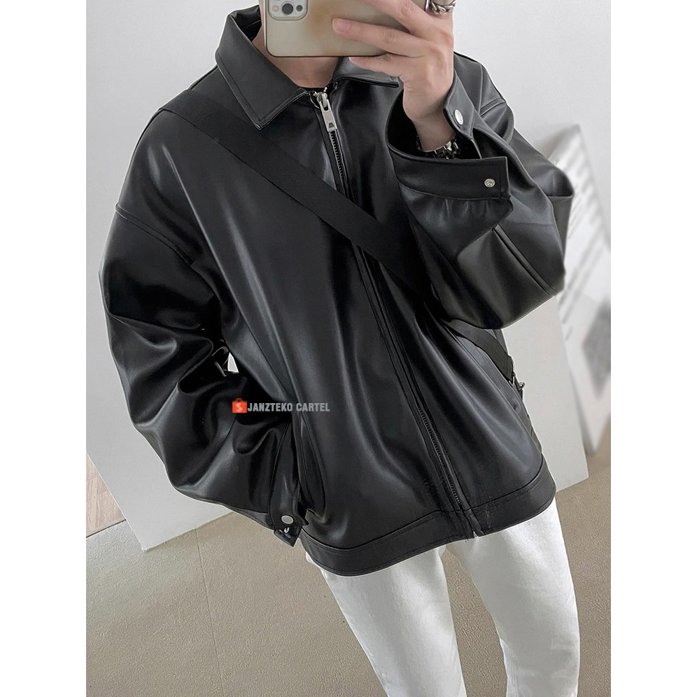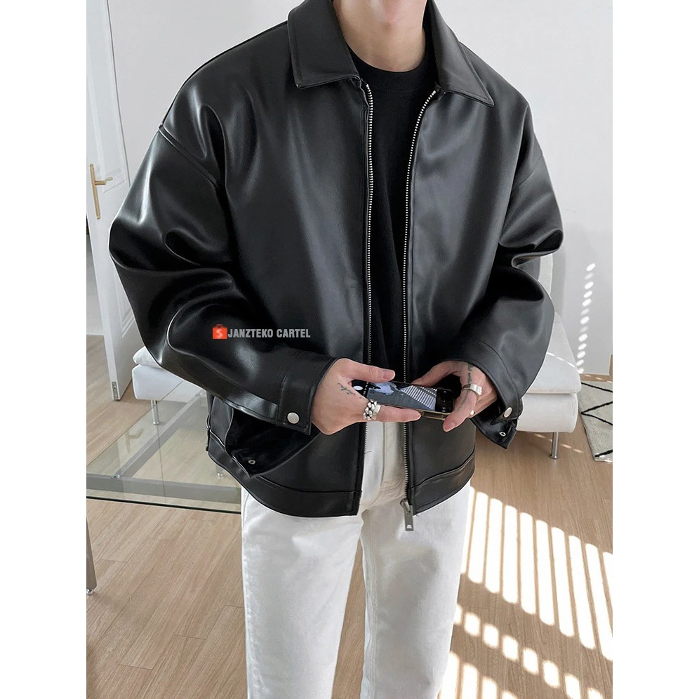 JNK x JORDI - Jaket Pria Classic Style Bahan Semi Kulit Sintetis Viena Oversize PU Leather Jackets Outfit Fashion Casual