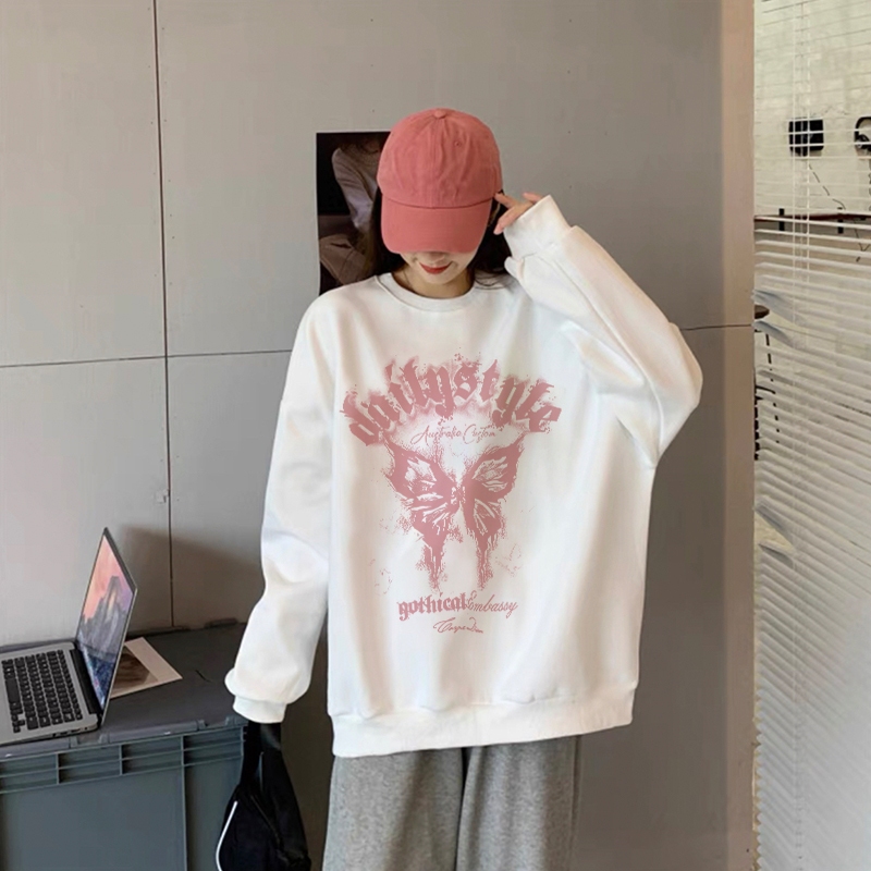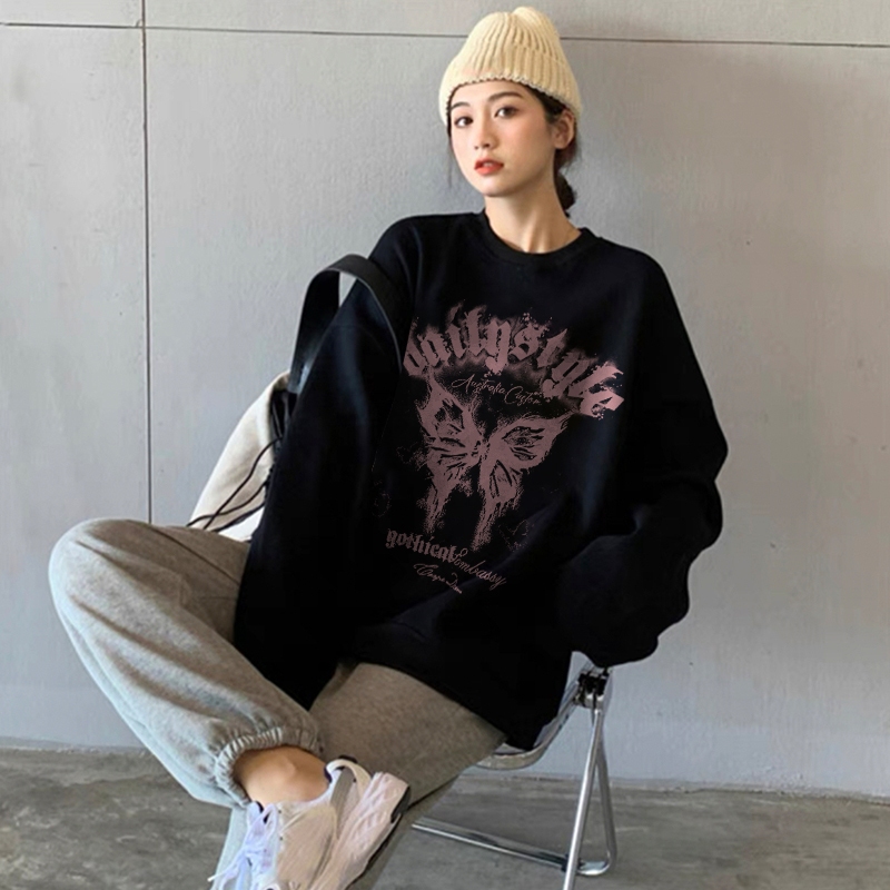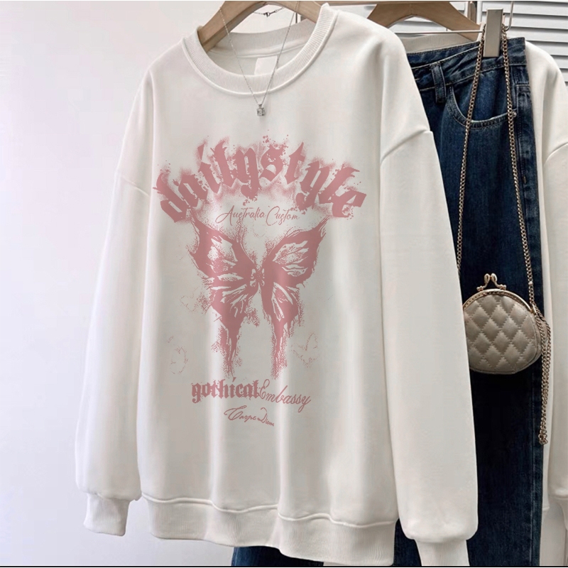 GB05A1006 Forteid.Print Sweater Oversize Pink Butterfly | Sweater Hitam Kaos Oversize Baggy A1051 Panjang Wanita Retro