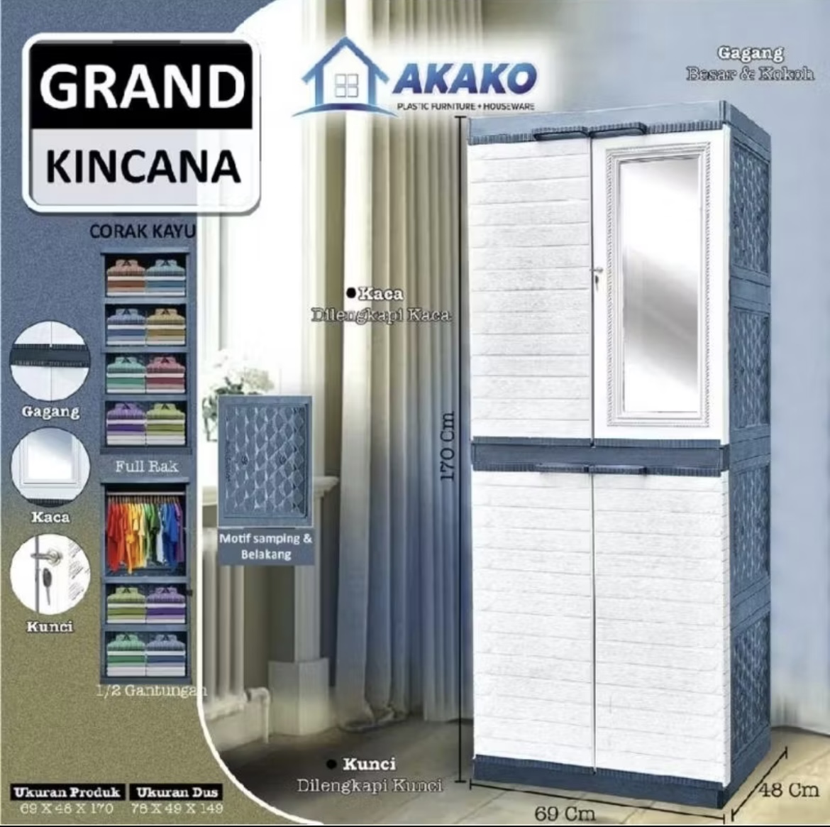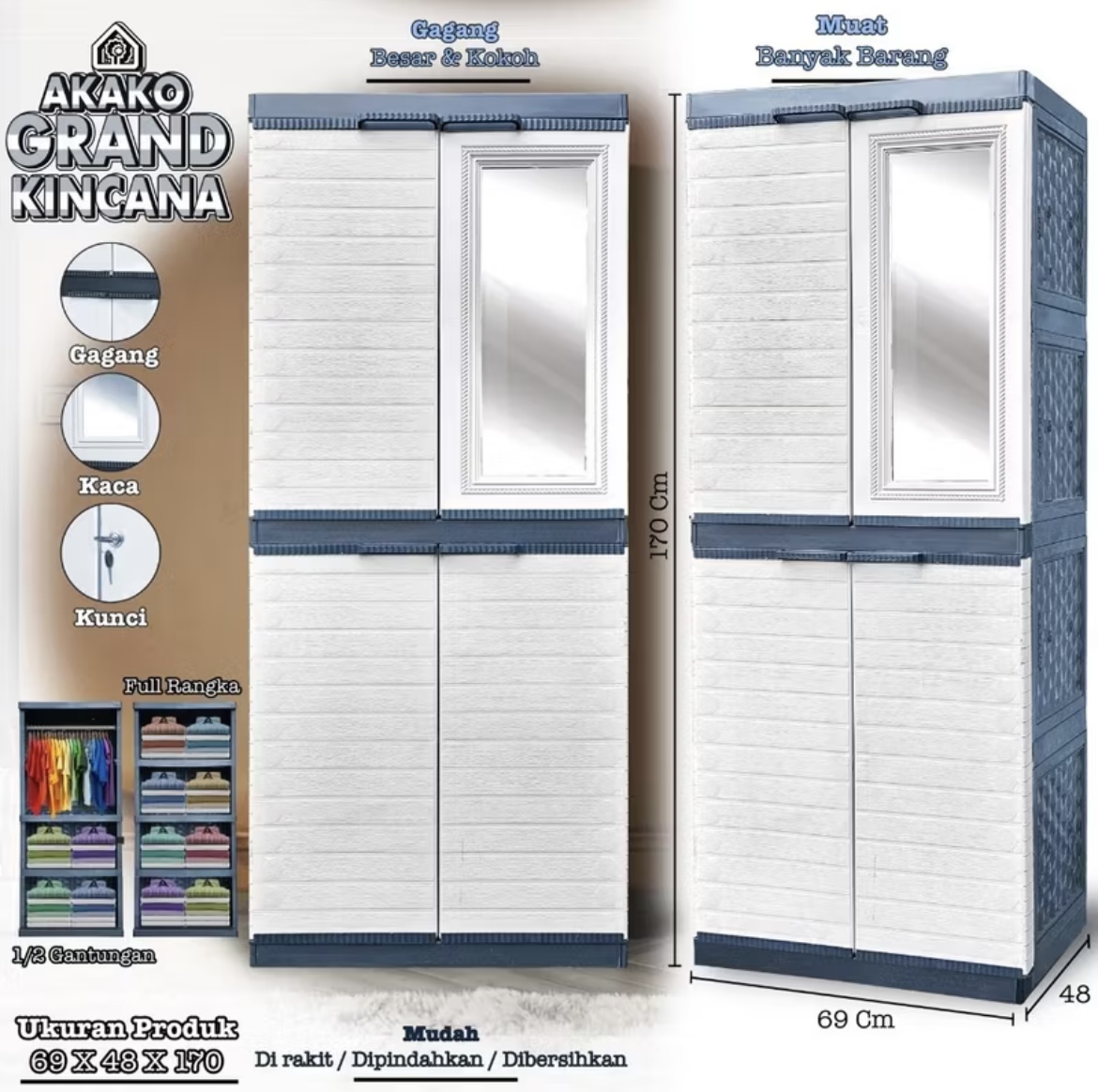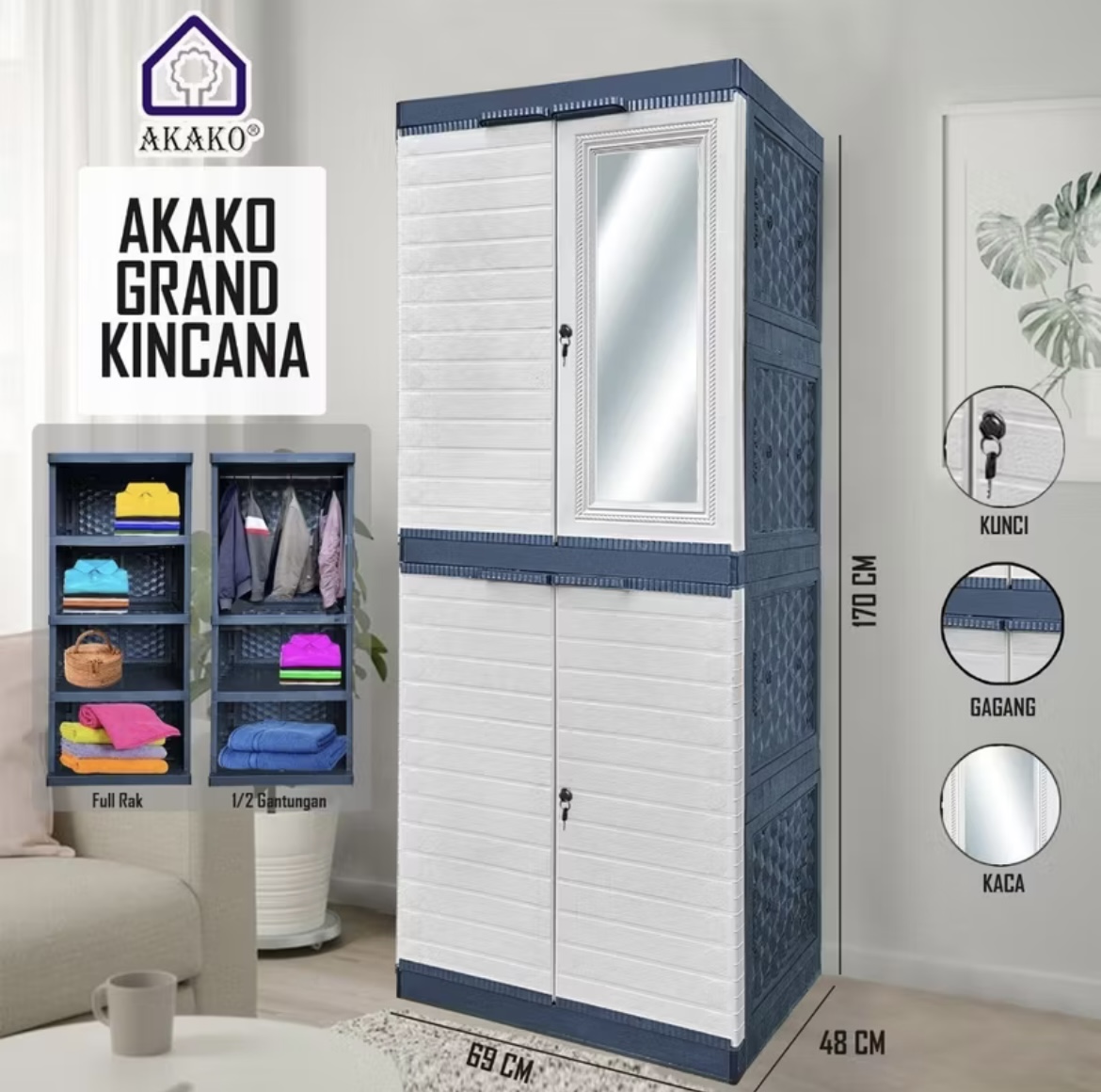 LEMARI PAKAIAN PLASTIK AKAKO GRAND KINCANA / LEMARI PLASTIK BERKUALITAS 2024 / LEMARI PLASTIK SUSUN 4 JUMBO