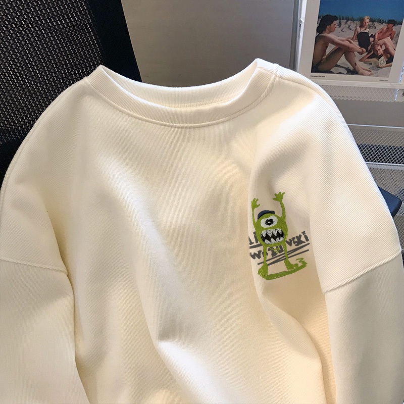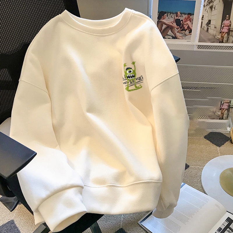 Fastfash Crewneck Sweater Pria Dan Wanita Lengan Panjang Lengan Panjang Oversize Monster Kecil Kartun - Switer Cre