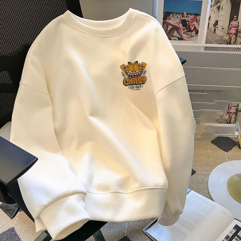Fastfash Crewneck Sweater pria dan wanita Lengan Panjang Lengan Panjang Oversize Garfield Switer crewneck netral u
