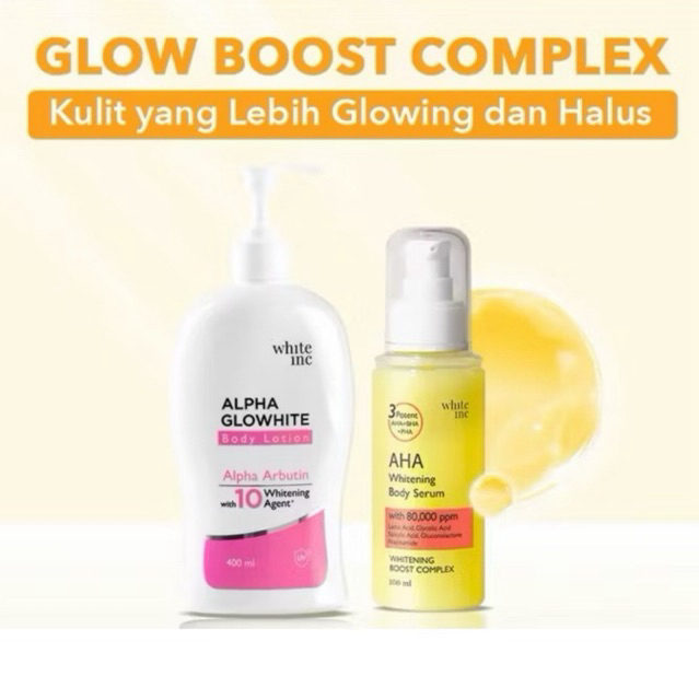 BUNDLING WHITE INC AHA BODY SERUM + ALPHA GLOWHITE BODY LOTION TO WHITENING & MOISTURISING