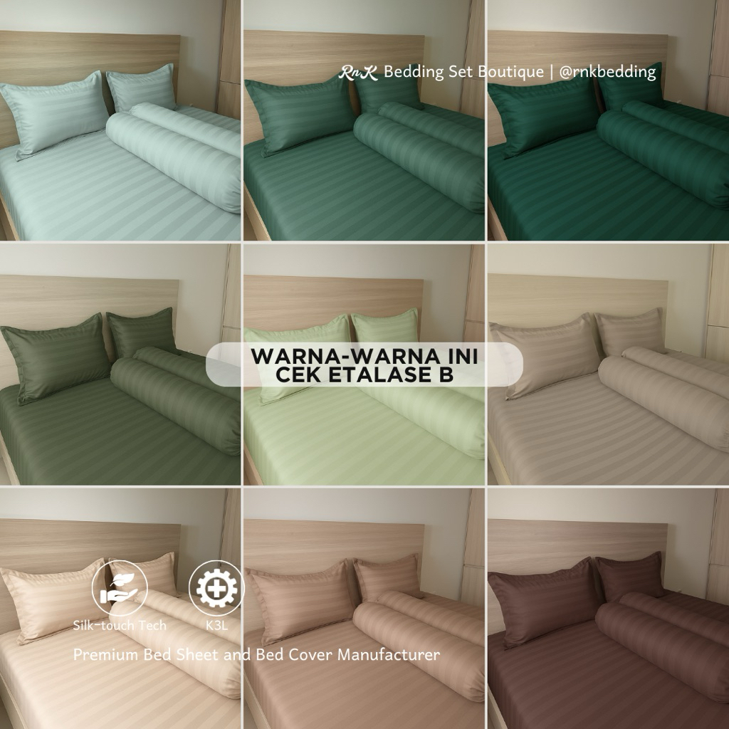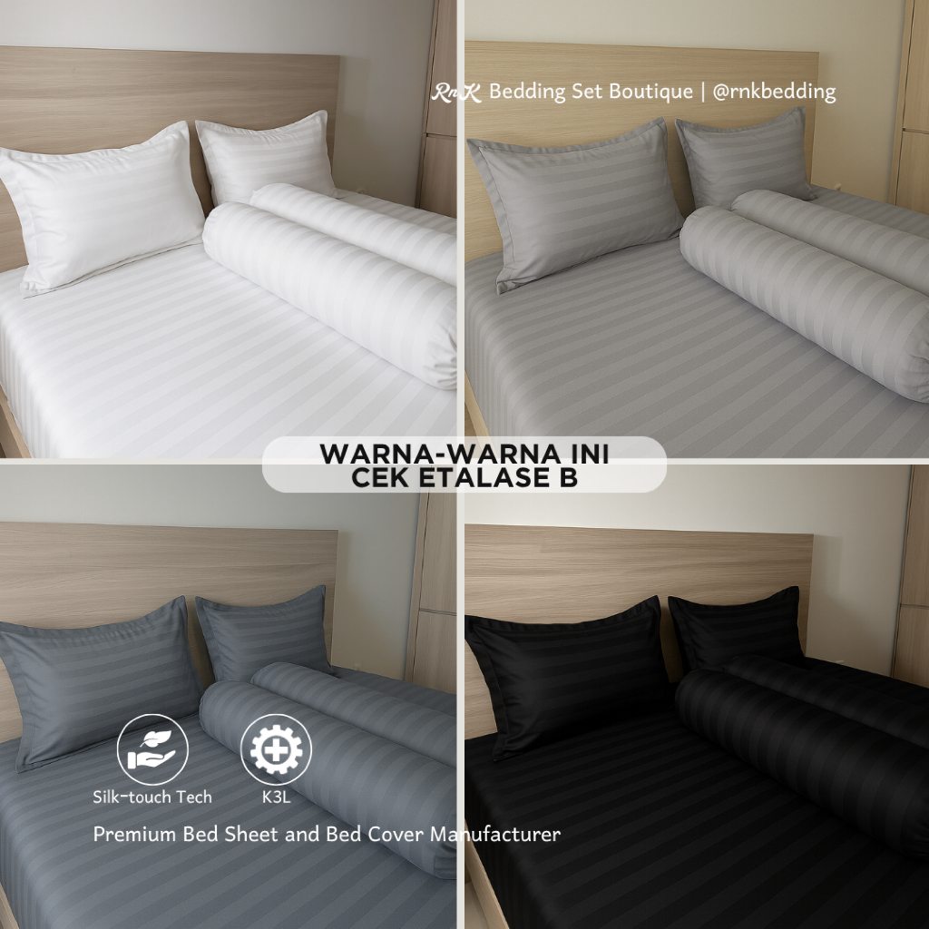 Sprei Set Hotel Microtencel Premium Adem Anti Geser Motif Salur Garis Garis Aesthetic A Tinggi 30Cm