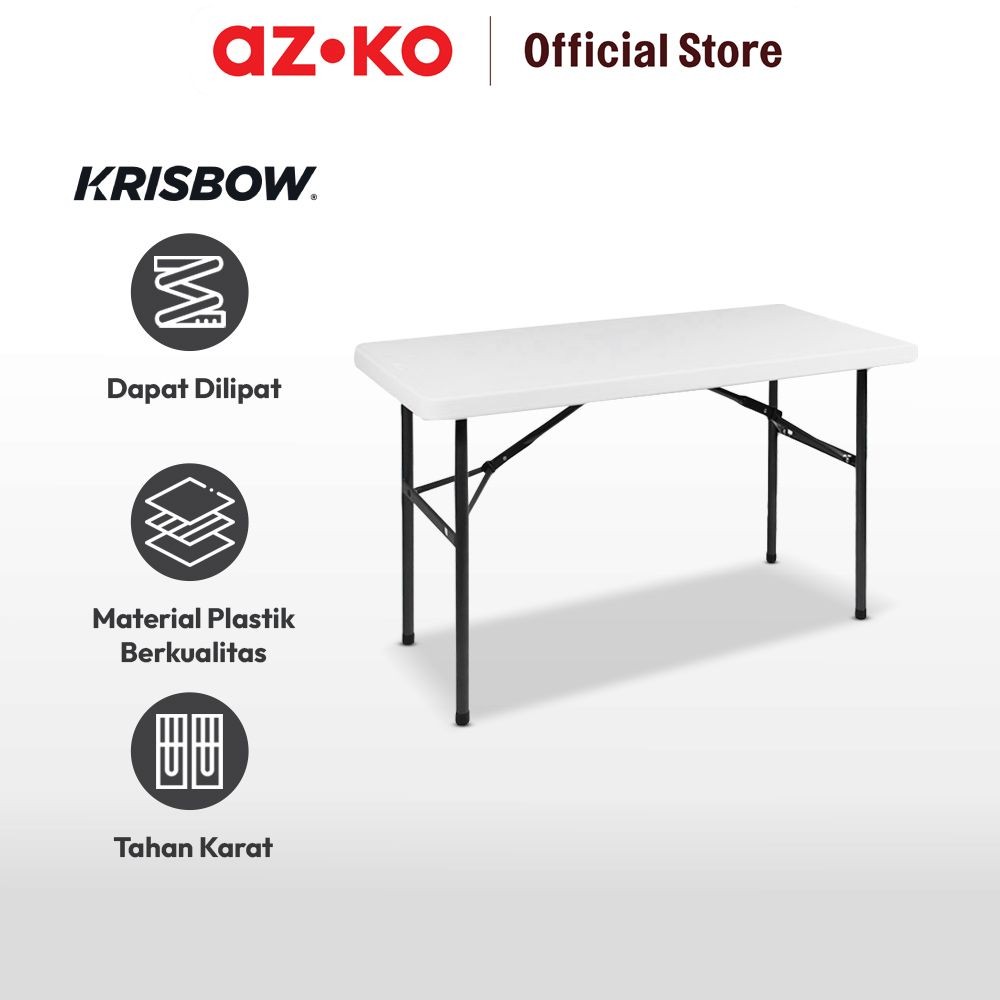 PROMO AZKO Krisbow 122x62 cm Meja Lipat - Putih Meja Serbaguna Folding Table Multifunctional Foldable Desk Picnic Table