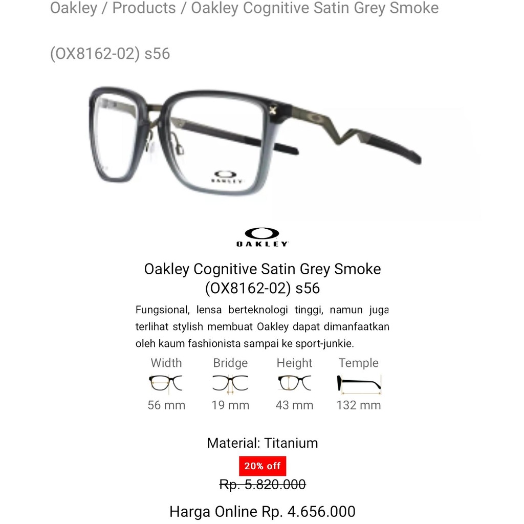 Frame Kacamata Pria Sporty Titanium Original Oakley Cognitive OX 8162 - Satin Grey Smoke 256