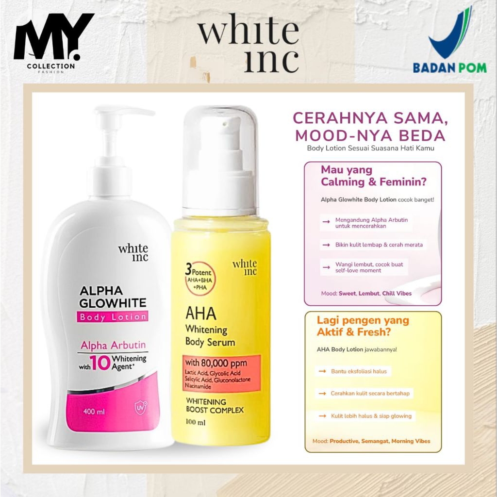 [LANGSUNG KIRIM] BUNDLING WHITE INC AHA BODY SERUM + ALPHA GLOWHITE BODY LOTION | SERUM & HB WHITE INC