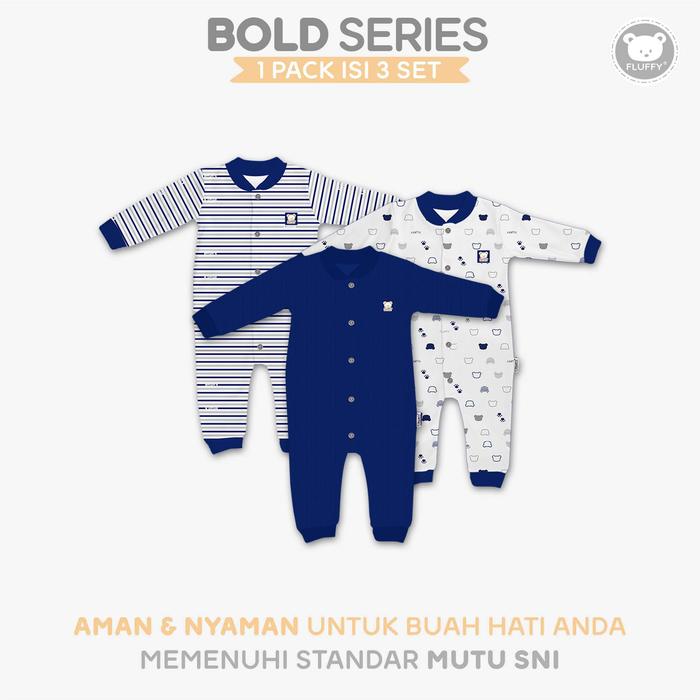 FLUFFY Sleepsuit Buka Kaki BOLD (Isi 3Pasang) KDS NAV SML - S