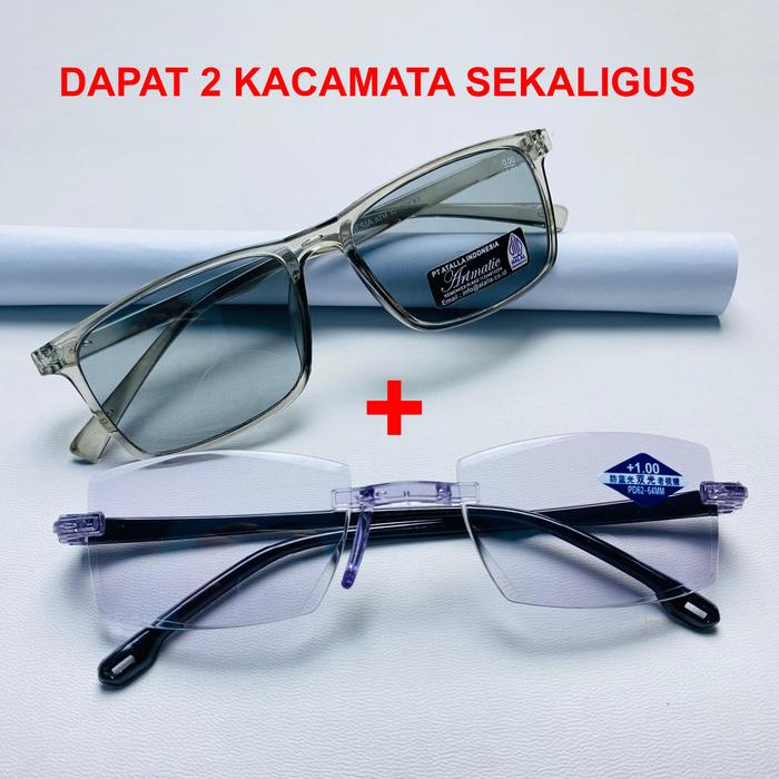 Kacamata Baca Plus & Jalan Frame Lensa Grey Abu-Abu Double Fokus Anti Radiasi Blue Ray - 40-42 Tahun +1.00