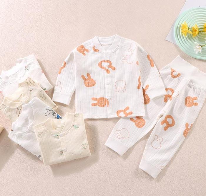 Setelan piyama baju bayi/baju tidur piyama bayi/sleepsuit bayi lembut dan adem Katun - U1 White Flower 12-24 Bulan