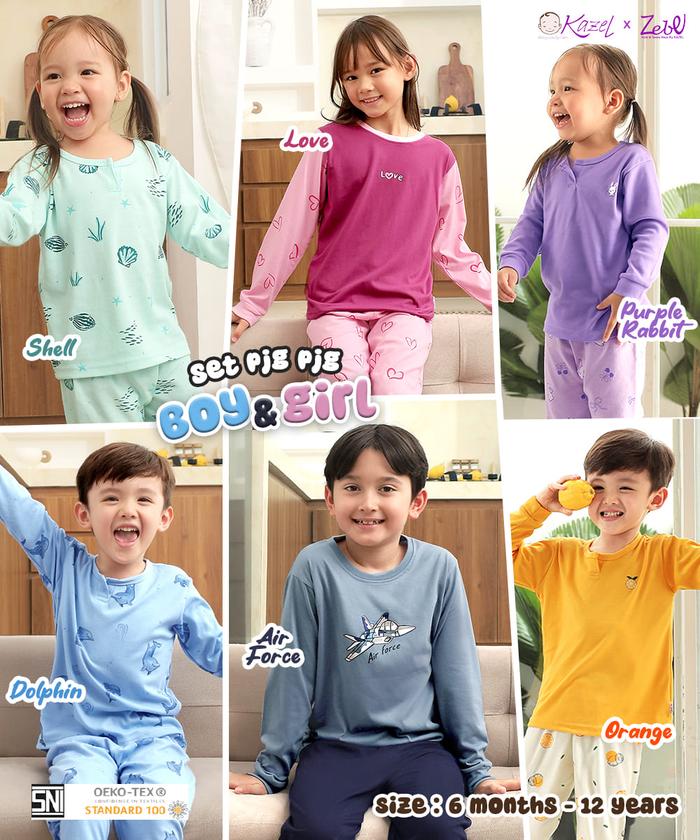 KAZEL ZEBE Piyama Anak Setelan Lengan Panjang - Celana Panjang (1Stel) 6Bulan - 11Tahun - Shell 6-12