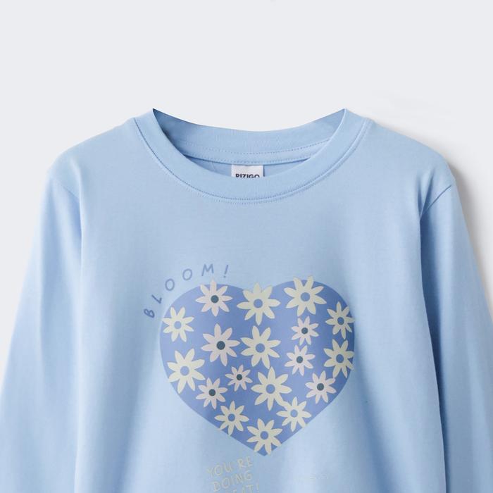 Rizigo Kids Baju Anak Series Girls Flowers Heart - Kaos Anak Perempuan Lengan Panjang - Sky Blue UMUR 2 TAHUN