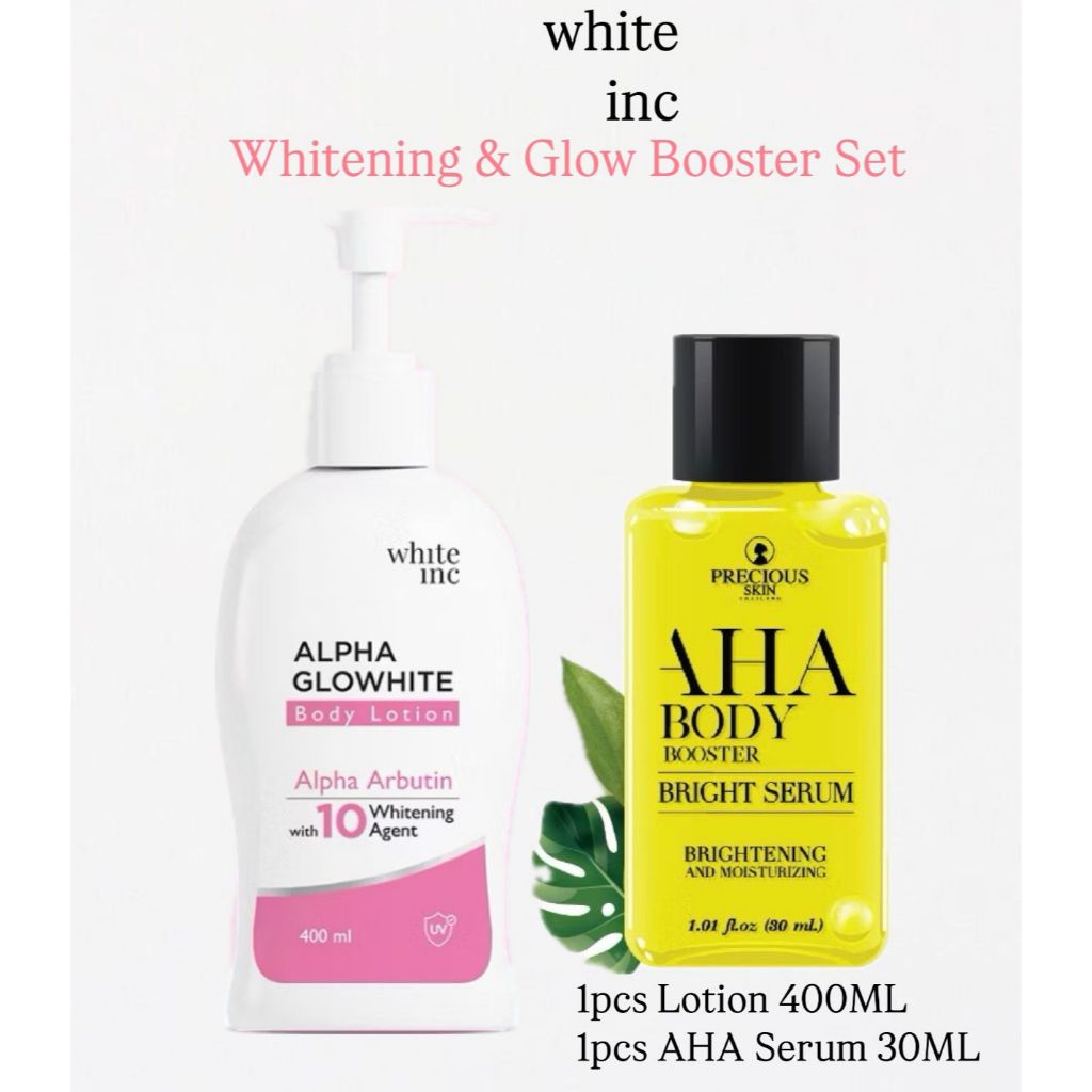 WHITE INC ALPHA GLOWHITE BODY LOTION WHITENING SET 2IN1 ( LOTION 400ML+ AHA BODY SERUM 30ML)