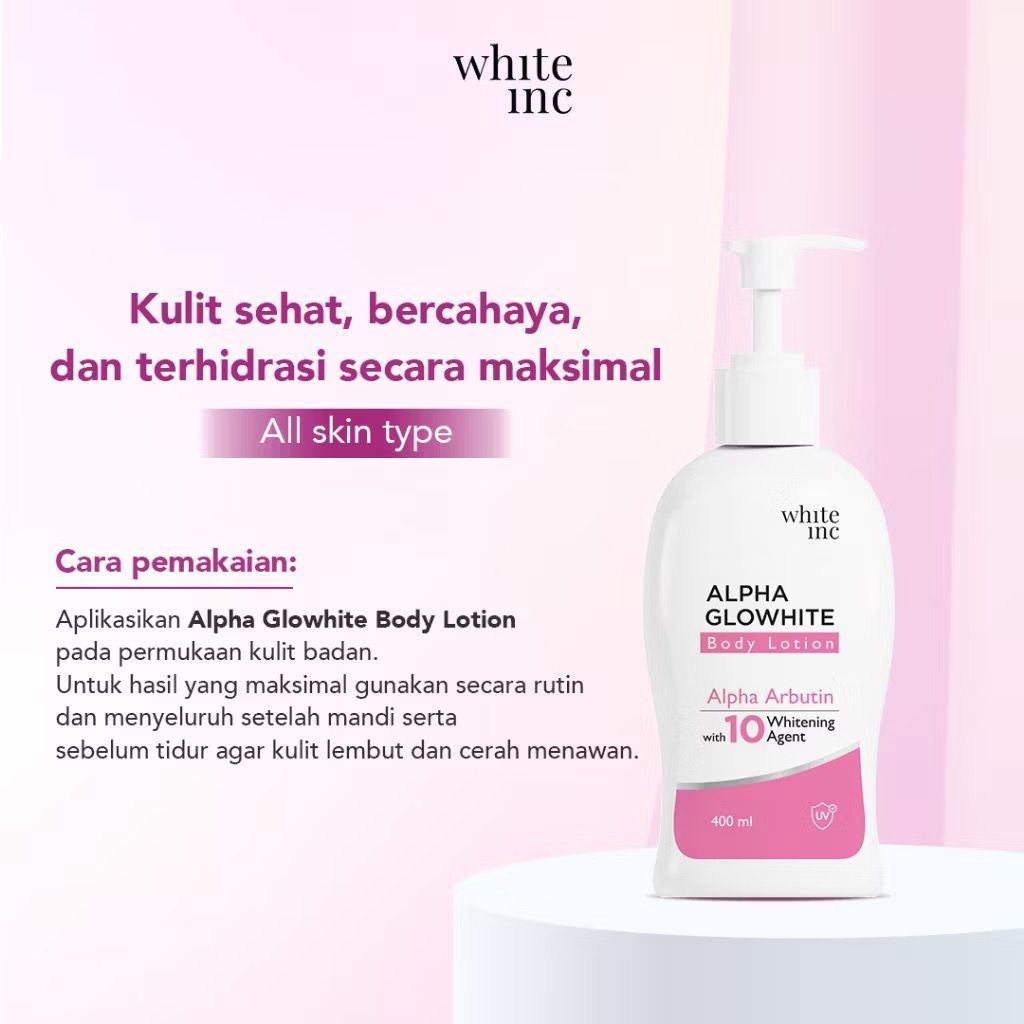 WHITE INC ALPHA GLOWHITE BODY LOTION WHITENING SET 2IN1 ( LOTION 400ML+ AHA BODY SERUM 30ML)