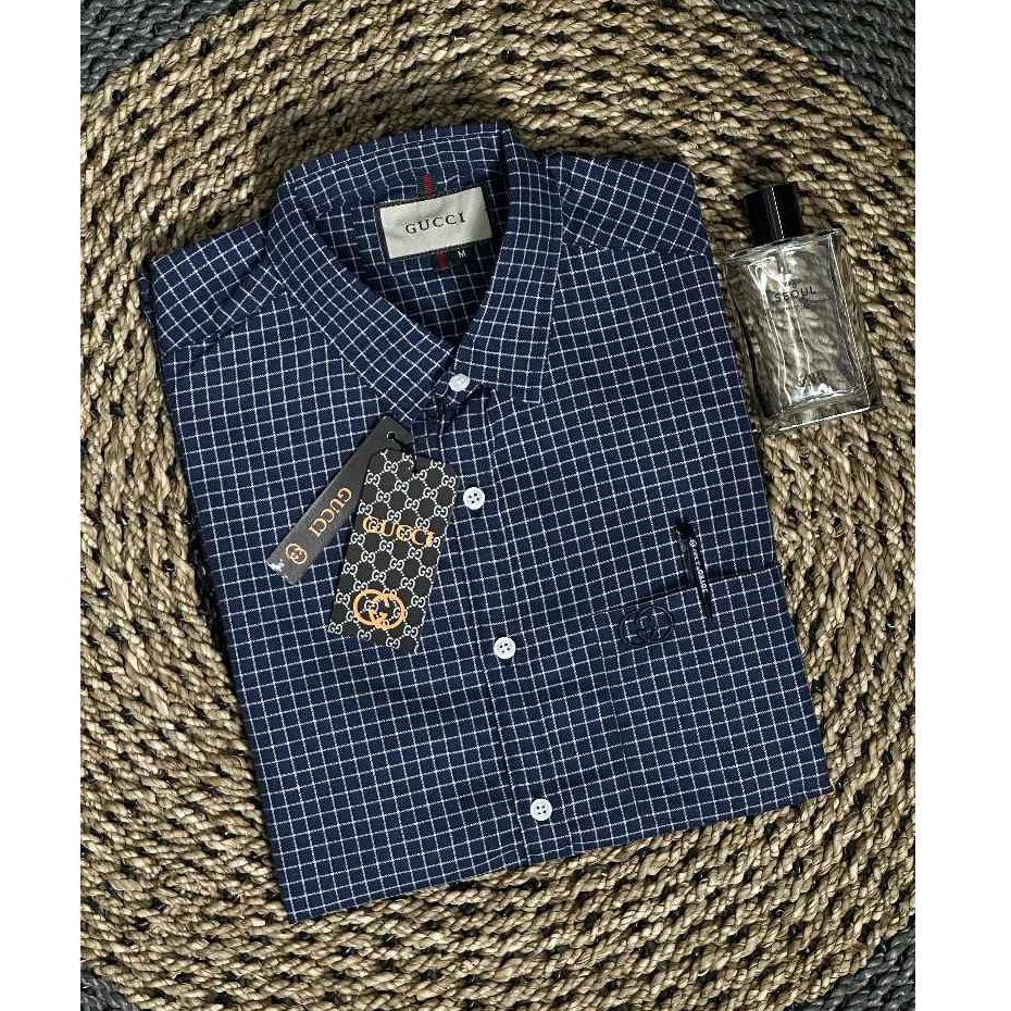 Kemeja Formal Garis Halus GC Bordir 3D Pria Pendek | Kemeja Catton Ganham Oxsford New | Kemeja Slim Fit Full Kancing | Kemeja Style Pria
